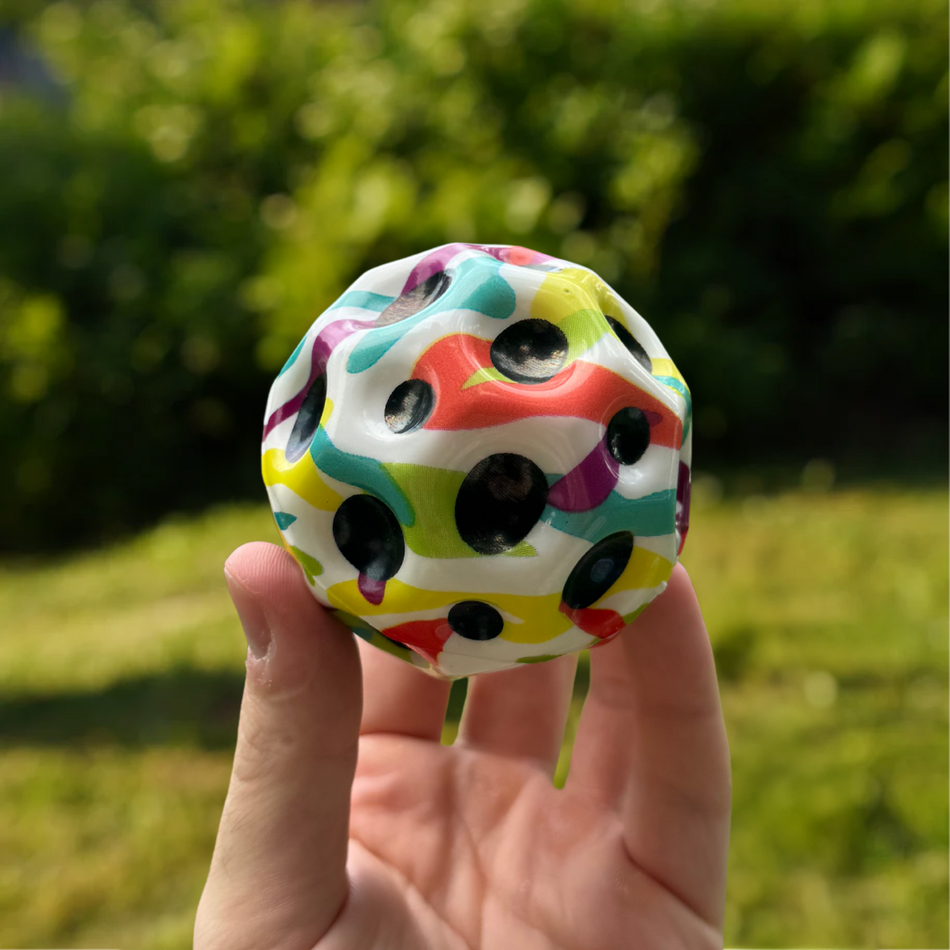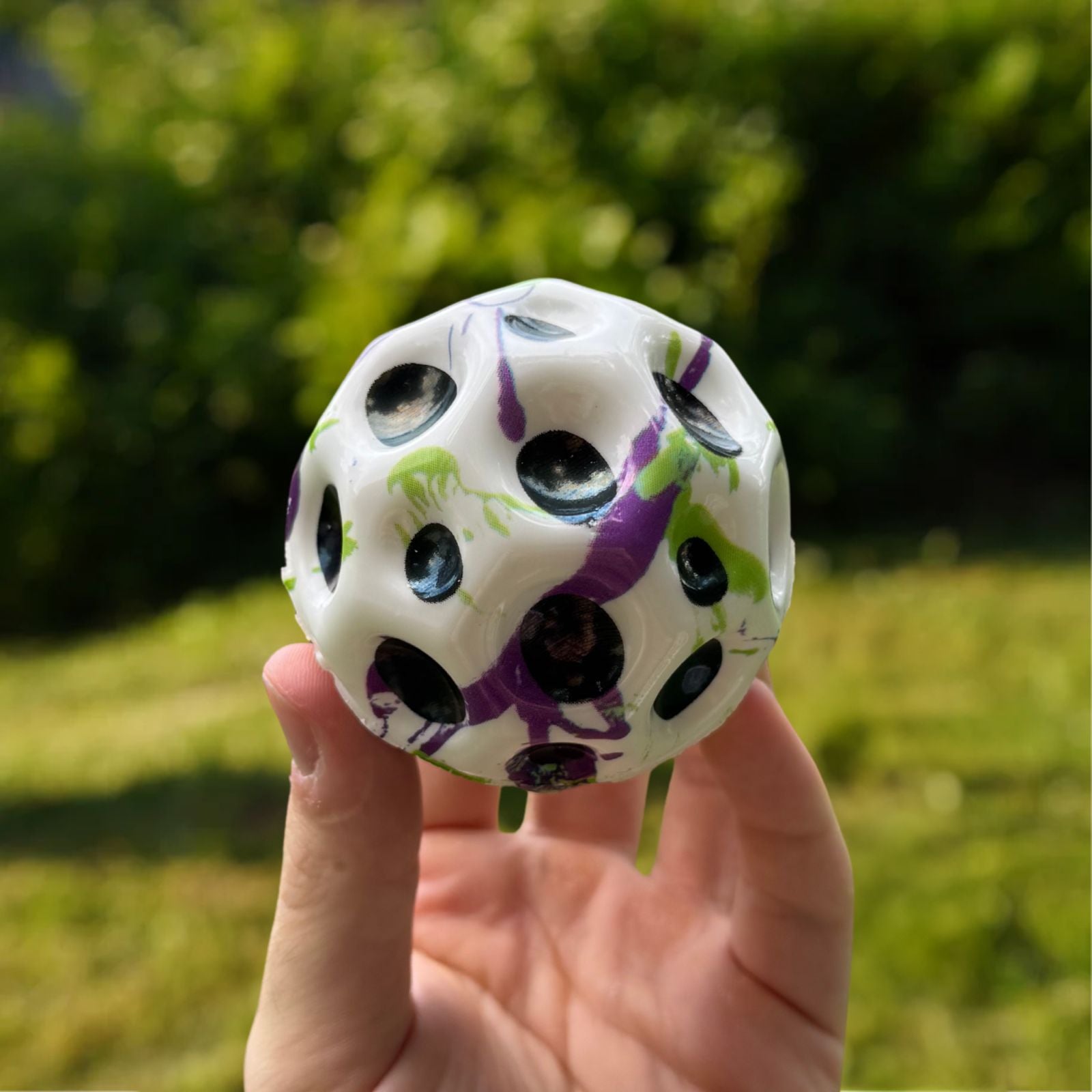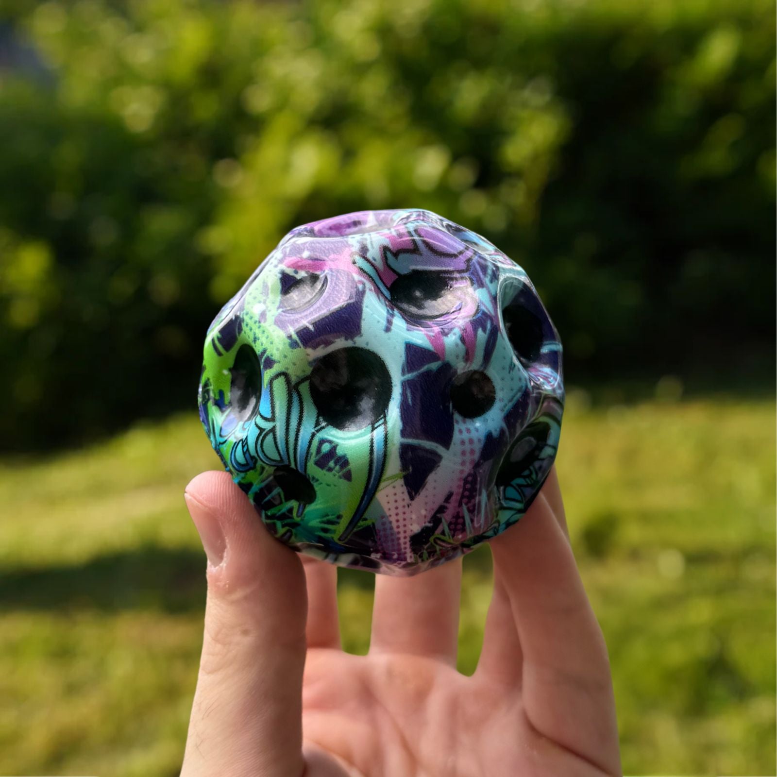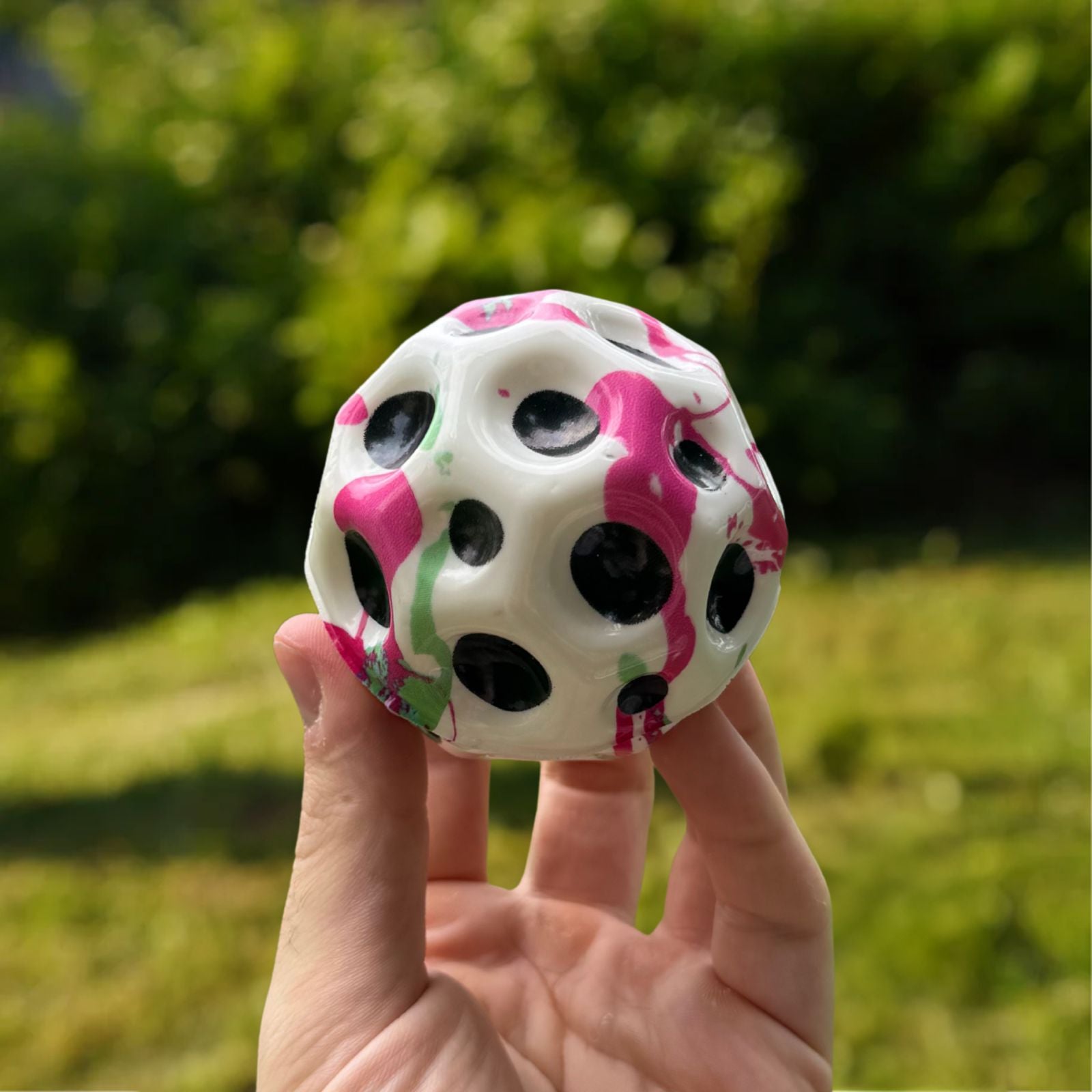 Alle unsere Bälle sind zwischen 6,5 und 7 cm groß, wodurch sie super in jede Hand passen – perfekt für Kinder und Erwachsene. Einzige Ausnahme: Unser XXL Ball. Dieser hat eine Größe von 10cm.